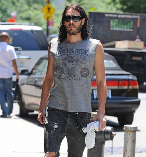 Y quienes dicen que solo las mujeres usan ropa con caricaturas, no conocen a Russell Brand y para una version mas rocker, pueden cortar las mangas de su t-shirt y les quedara igual que a el.!